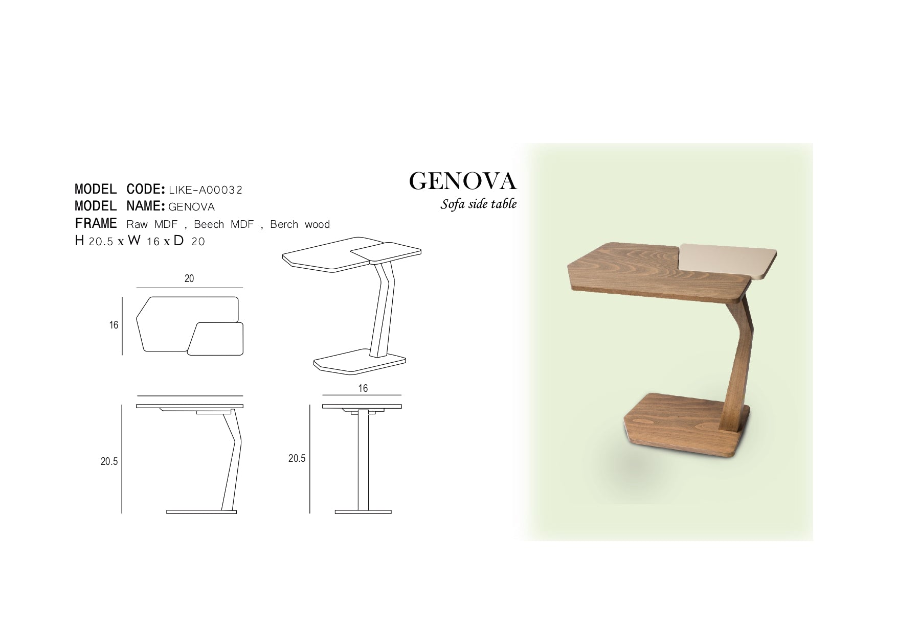 The GENOVA features dimensions of 16 inches in depth, 20 inches in width, and 20 inches in height, making it a compact and practical piece for various settings. Constructed from high-quality wood, it weighs 13.2 pounds, balancing sturdiness with ease of handling. Its beige/taupe color offers a subtle, elegant tone that integrates seamlessly into a wide range of interior designs, providing both functionality and refined aesthetic appeal.