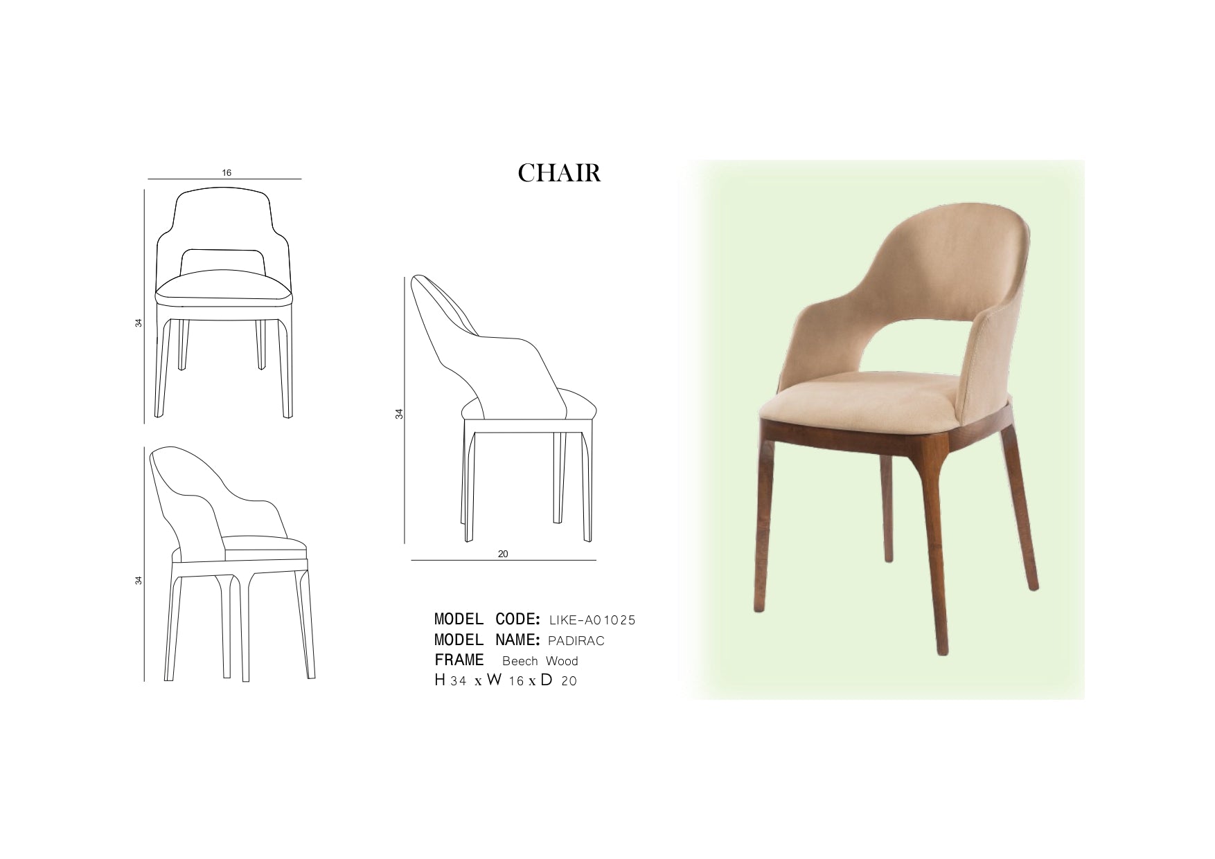 The PADIRAC chair features a durable wood frame paired with light gray fabric upholstery, combining strength and subtle elegance. With dimensions of 20 × 16 × 34 inches and a weight of 17.6 pounds, it offers a comfortable and stable seating option. Its neutral color and quality materials make it a versatile addition to various interior styles, ensuring both functionality and refined aesthetics.